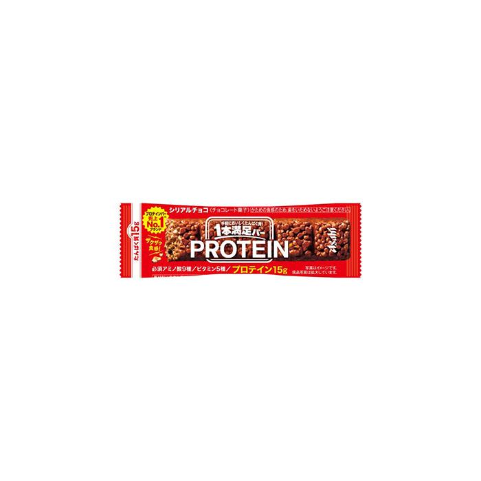 一本満足バーのプロテインタイプのものです、一本当たり約15gのたんぱく質が含有されています。トレーニング中にたんぱく質が足りていないとトレーニングの質の低下にもつながりますし、怪我や筋肉痛のもとにもなりますのでたんぱく質を適度に摂取するようにしましょう。